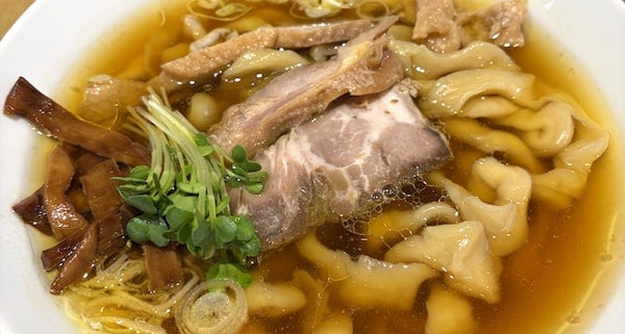 大行列のラーメン店で食べた極太麺