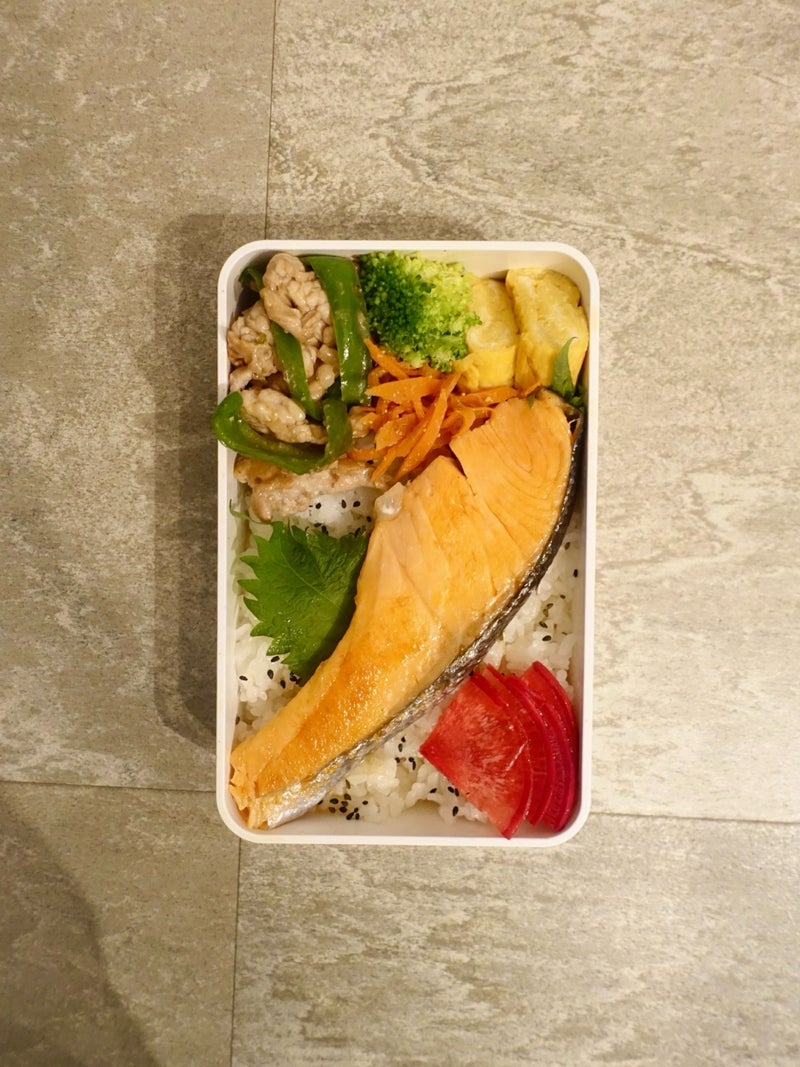 高校生男子のシャケと肉炒め弁当