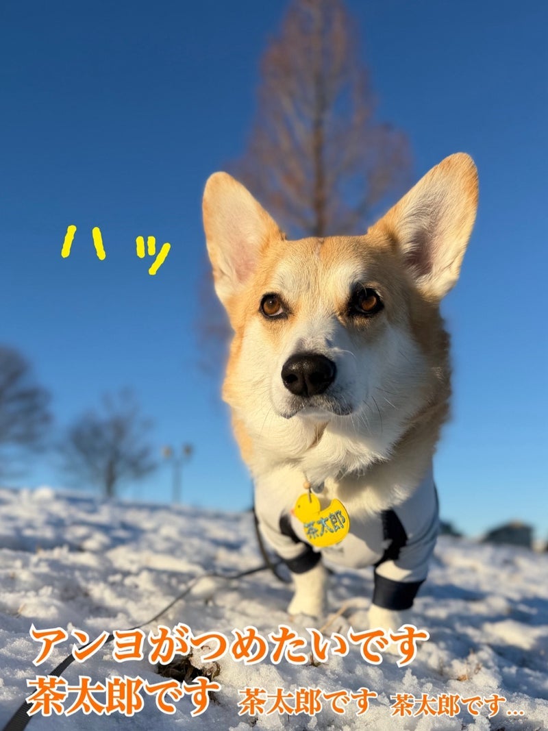 急に笑顔が消え寒さを感じた犬