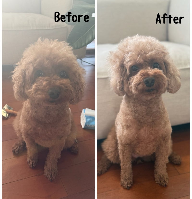 おうちカットで人間っぽくなった犬