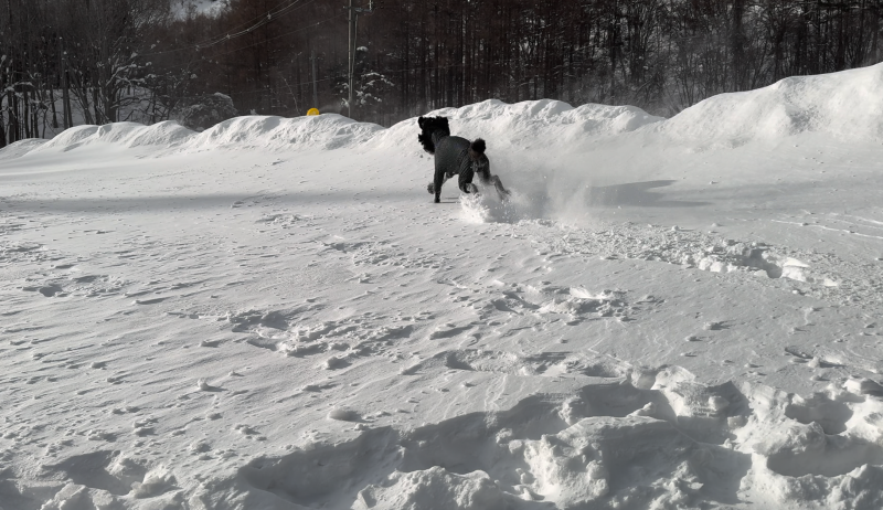 わんこの足に全くつかない雪玉