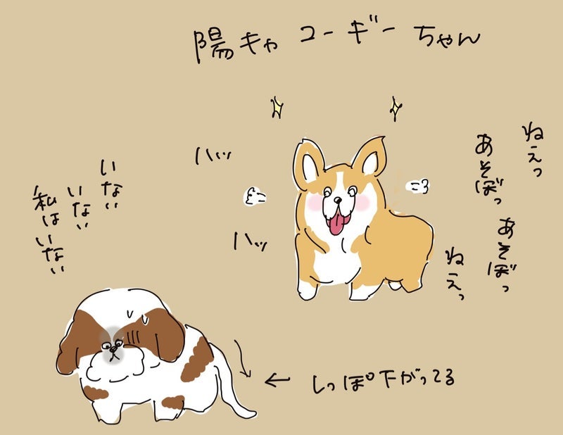 他の犬にビビり端っこにいたワンコ