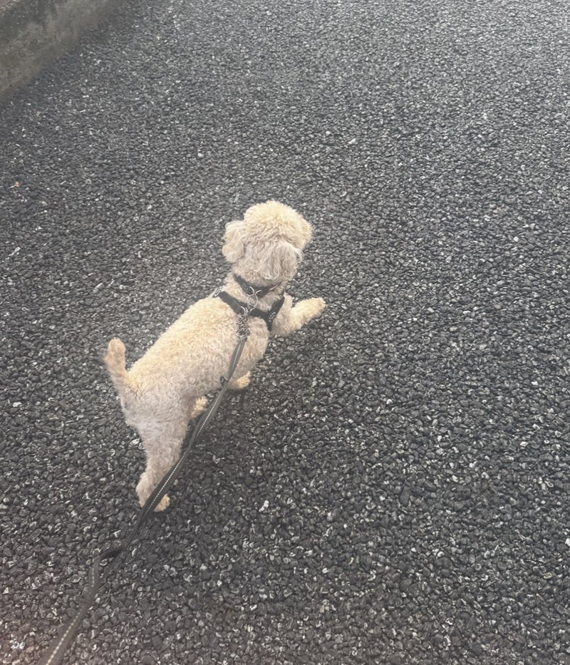 雨の翌日に楽しそうに歩く様子