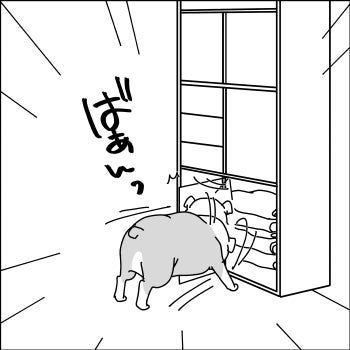 吠えながら頭を突っ込んでいた棚