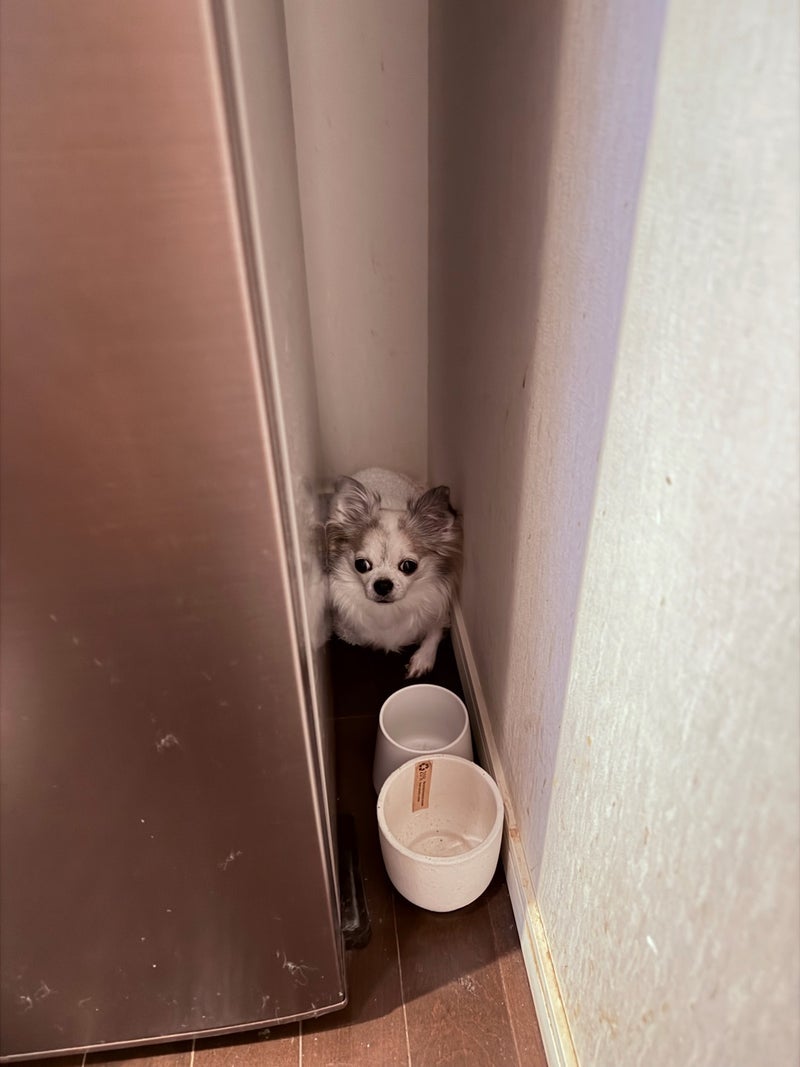 冷蔵庫と壁の隙間の避難場所