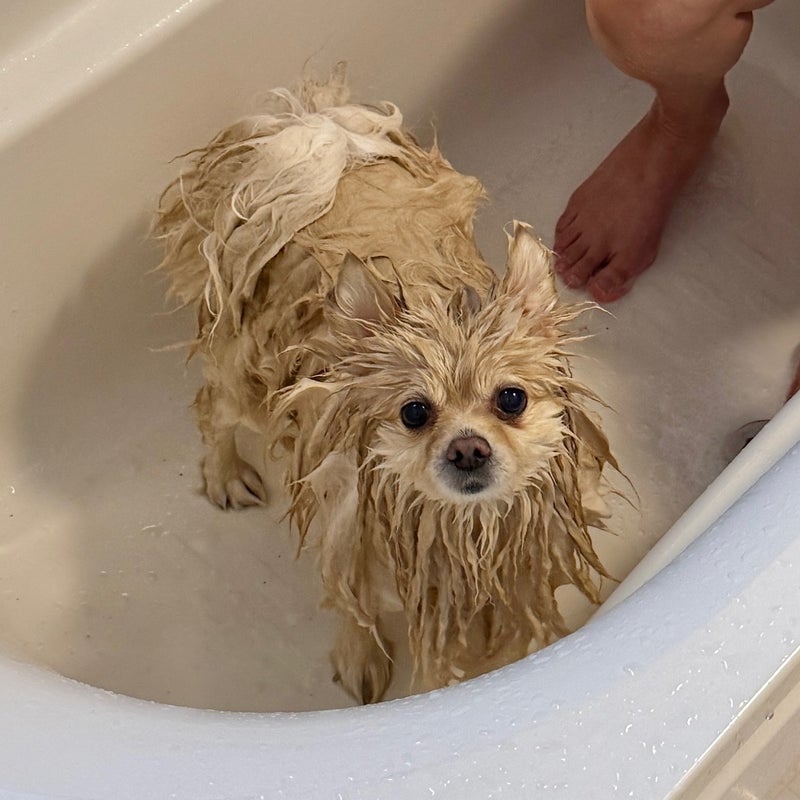お風呂で顔が変わった別のわんこ