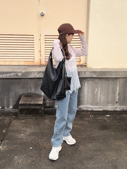 レースキャミでのレイヤードスタイル