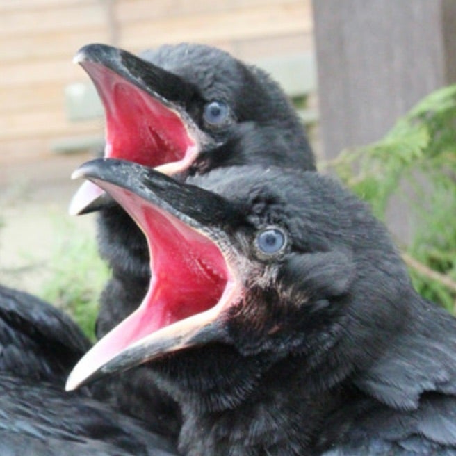 公園で見たカラスの赤い口の中