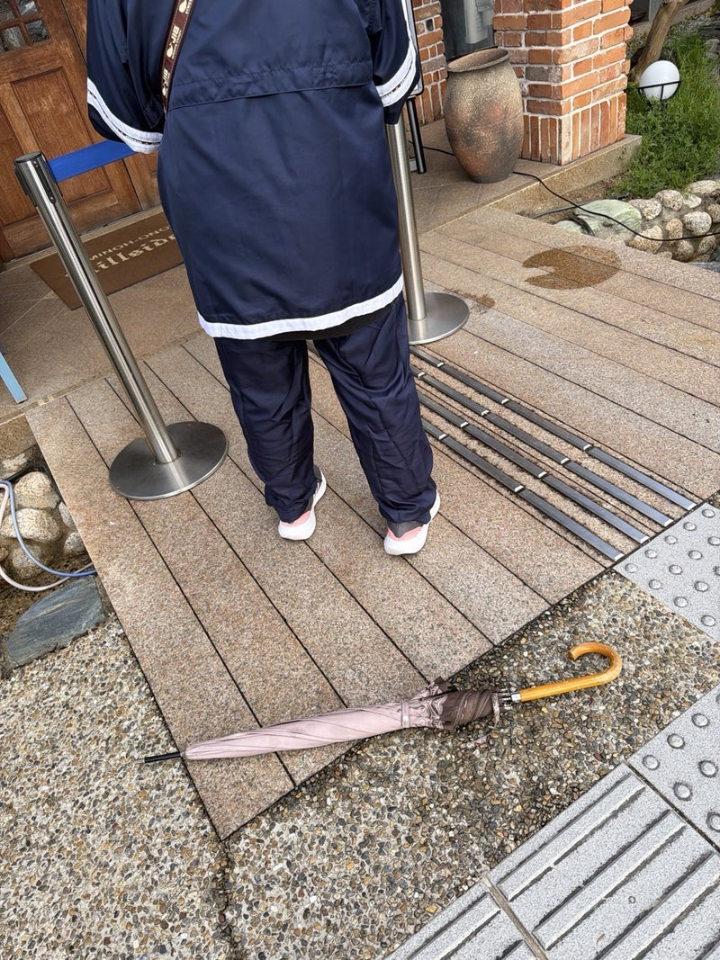 大行列の中であった傘での順番取り