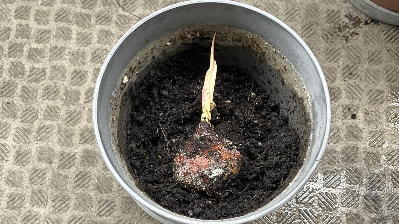 枯れたチューリップと湿っていた土