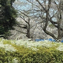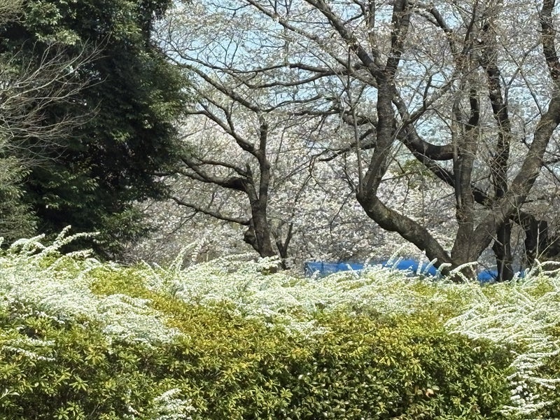 東京の郊外の雪柳と桜のコラボ