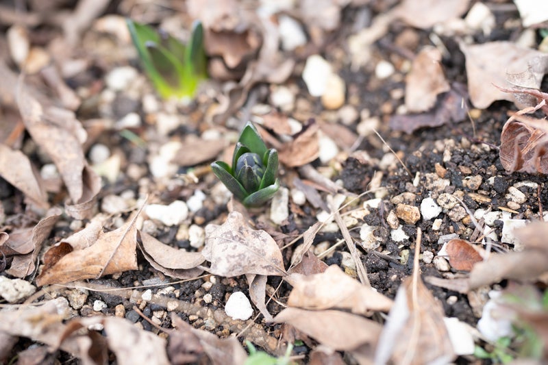 刈り込んだ庭に芽吹く小さな春