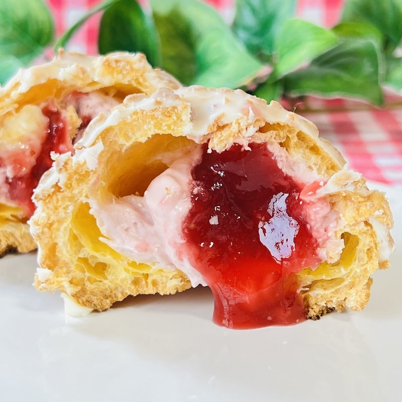 圧倒的な量の苺ソースのクッキーシュー