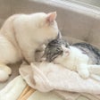 入院して頑張った甲斐が、あったというものです。 腎臓の数値が日々改善しています。 日に日に元気になってきているように見えます。 今日は私が行くと、手を揃えて待っていました。 かわいいものです。 桃ちゃん、会いにきたよ〜 ケージを開けたら、桃ちゃん出てきました。 まだまだ! まだ出られませんよ。